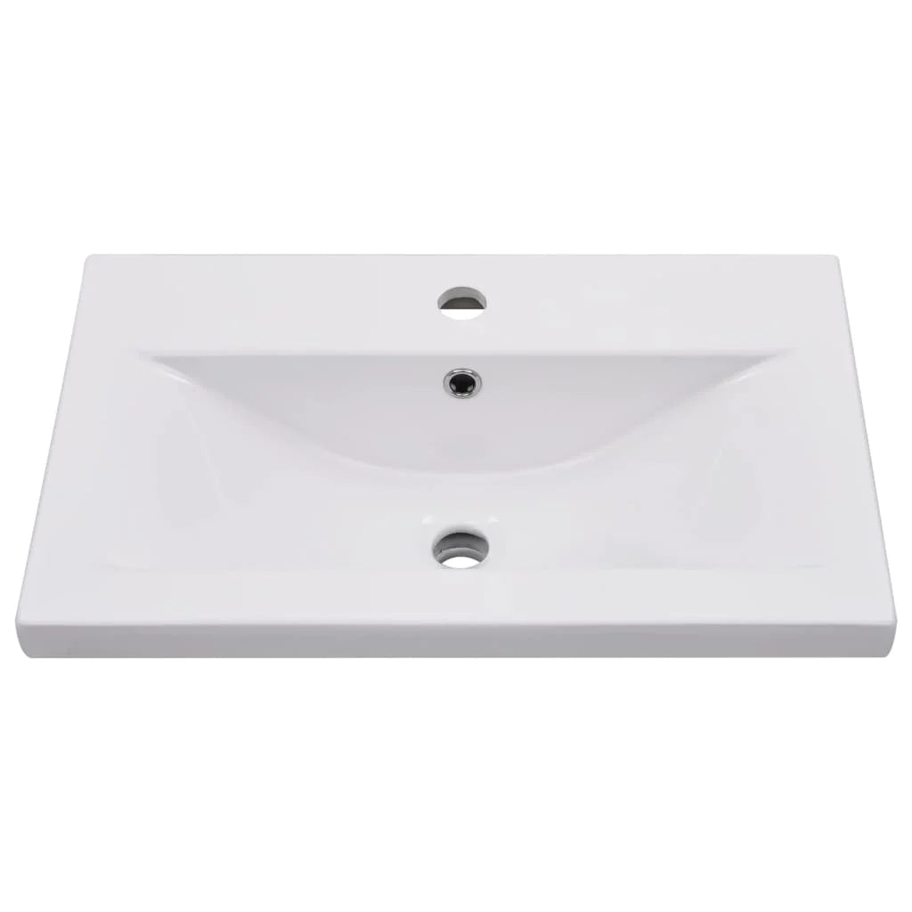 Omarica za umivalnik je izdelana iz inženirski les, zato je močna in stabilna. Omarica ima 1 predelek za shranjevanje in 2 vrata, zato ponuja veliko prostora za vaše stvari. Popolnoma se prilega pod umivalnik ter nudi prostor za priročno shranjevanje v kopalnici. Umivalnik iz keramike je več kot samo vsakodnevni pripomoček, saj je tudi okras za vaše bivalne prostore. Umivalnik z modnim in sodobnim dizajnom se bo podal k vsakemu dekorju. Ima tudi luknjo za odtekanje vode, če se umivalnik preveč napolni. Glazirana površina zagotavlja moderen in eleganten dizajn. Ogledalo prispeva k odličnemu izgledu dekorja v vašem domu. Ta komplet lahko preprosto očistite z vlažno krpo.