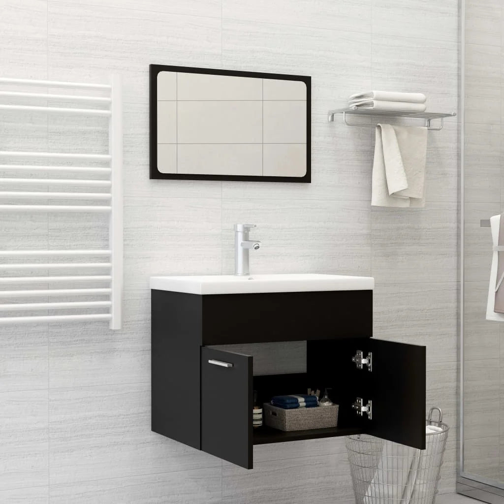 Ta stilski komplet kopalniškega pohištva, ki vsebuje omarico za umivalnik, vgradni umivalnik in ogledalo, je popolna izbira za vašo kopalnico ali toaleto, saj se ponaša z osupljivim in urejenim izgedom.